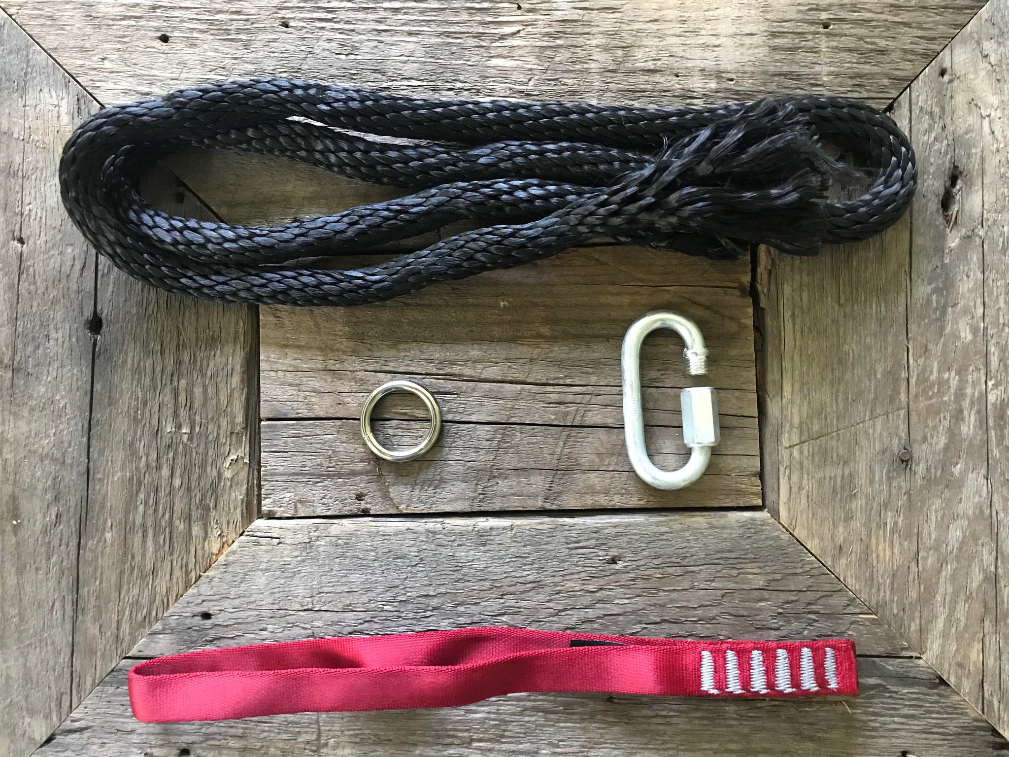 Rope, ring, carabiner, and runner included. Perfect for grip training!